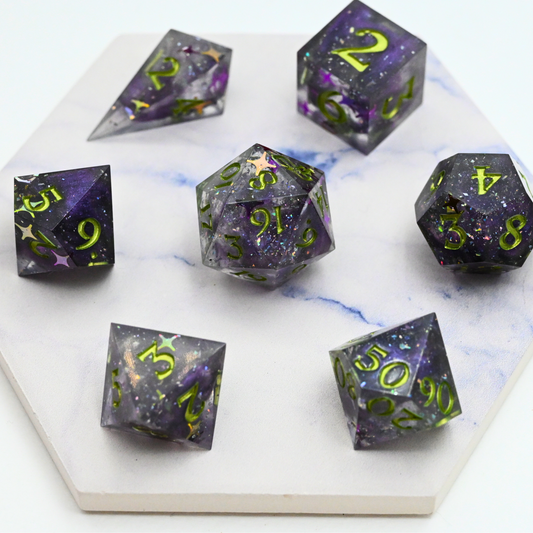 Purple and Green Stars Experimental Dice Set